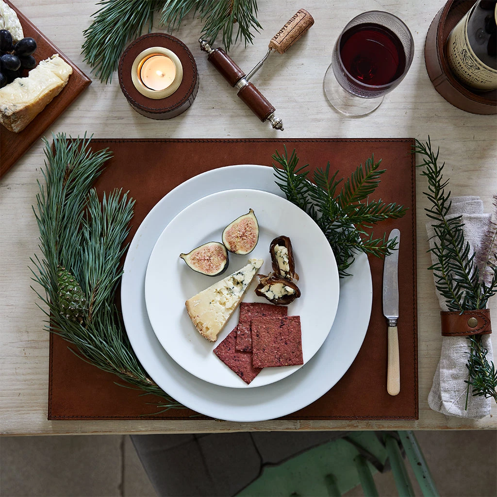 The ultimate leather place setting for six people. Fabulous for festive entertaining and special occasion dining.