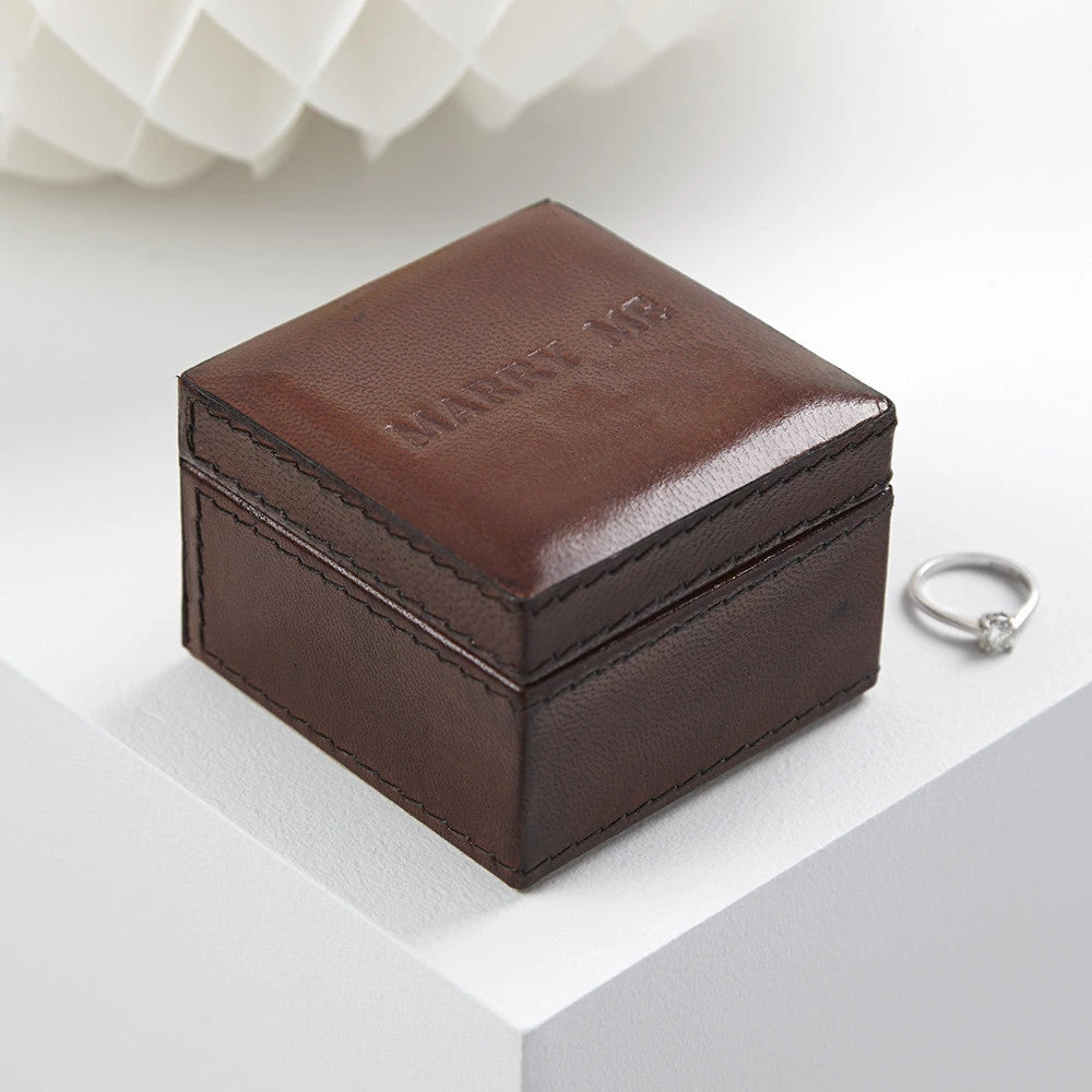 It will fit snuggly into our three or five watch boxes should you wish to create a different gift. The ring box can be personalised in the centre of the lid by the process called blind embossing. We emboss in the centre of the lid.
