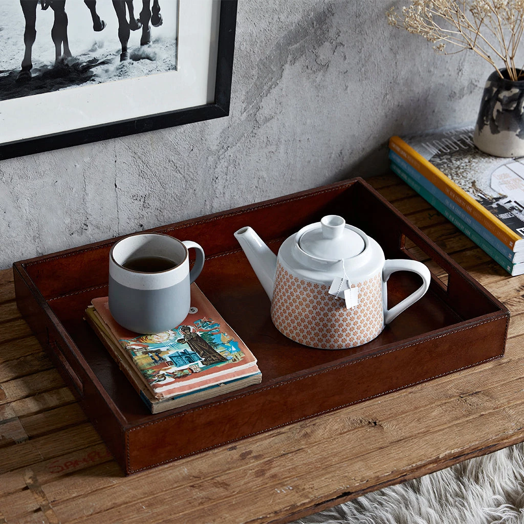 If you’d like a pair of trays see our leather tray set for serving tea and coffee.