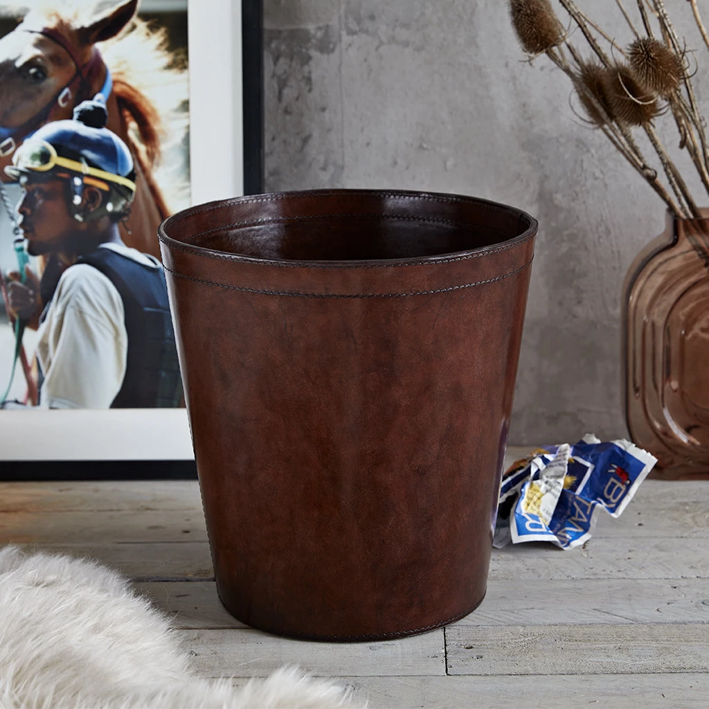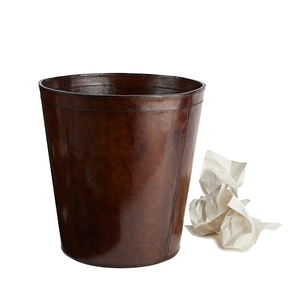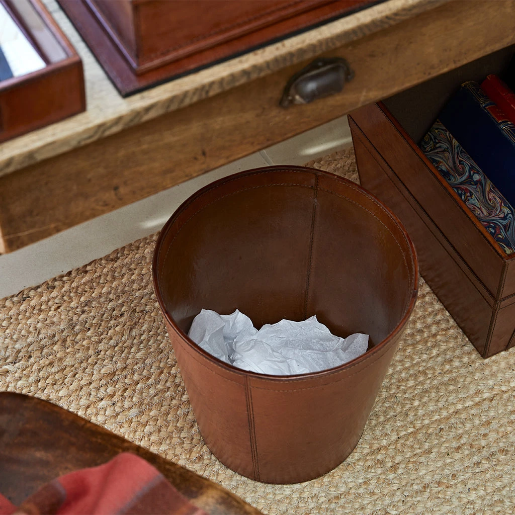 Simple, clean lines make this leather waste paper bin a stunner. Too smart to hide under a desk? Vertical stitching accentuates the height of the bin. Perfect to match with our other desk accessories – desk mat, pen box, and business card holder- in the same conker brown leather. Fit for any study, sitting room or bedroom.