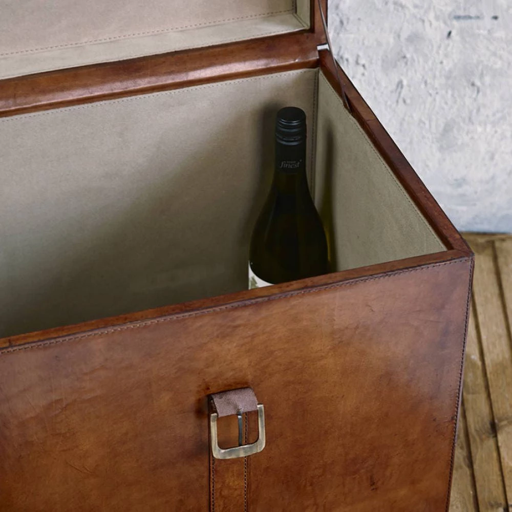 Life of Riley’s leather chest looks magnificent in any home setting – in the sitting room, along a hallway or at the end of a bed. Always popular, they provide much more than just aesthetic appeal, offering a stylish way to stow away linen, children’s toys or memorabilia. Our lined leather chests are empty so the perfect size for storing old LP’s and upright bottles of wine.