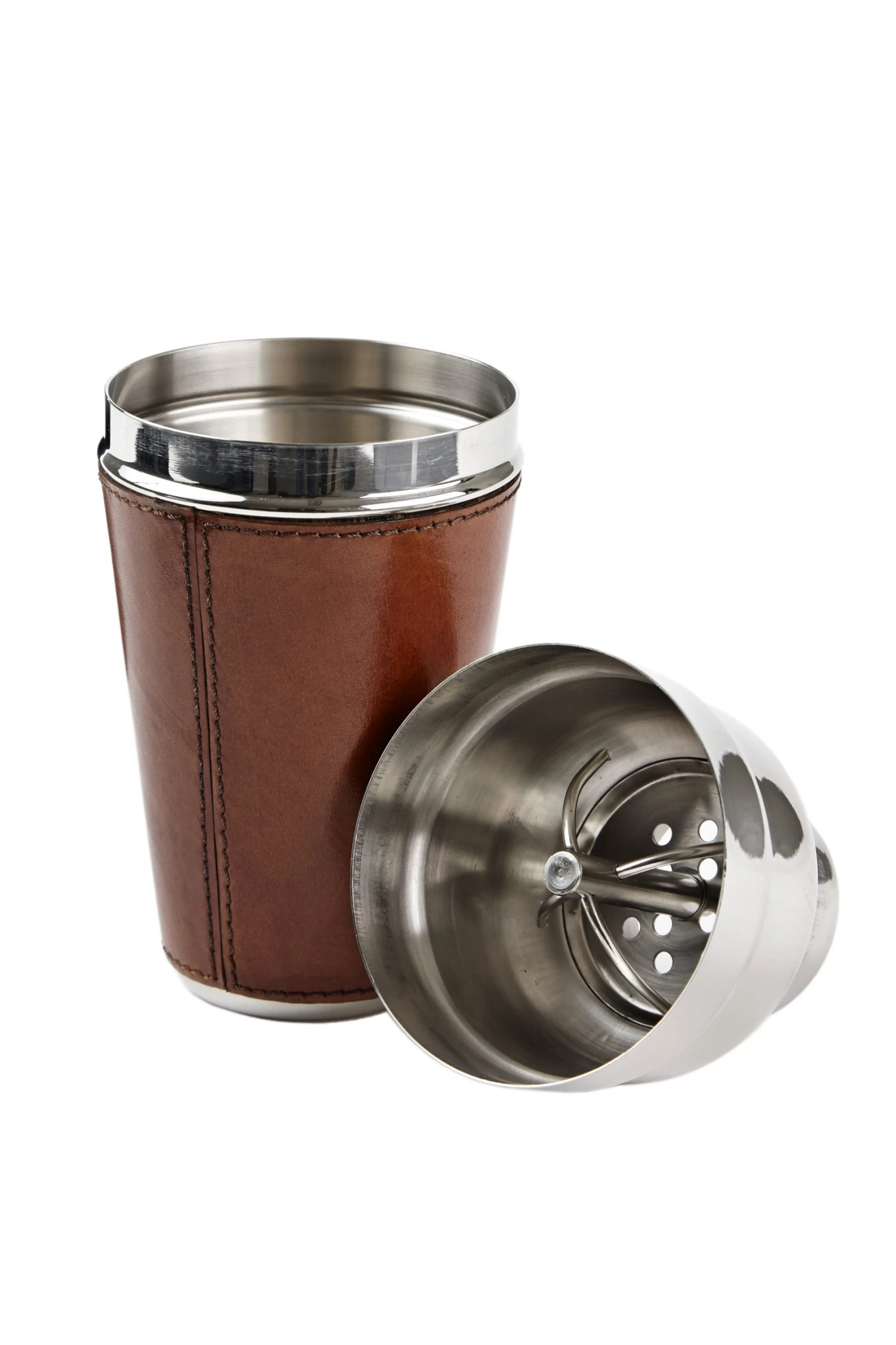 A classic leather cocktail shaker.