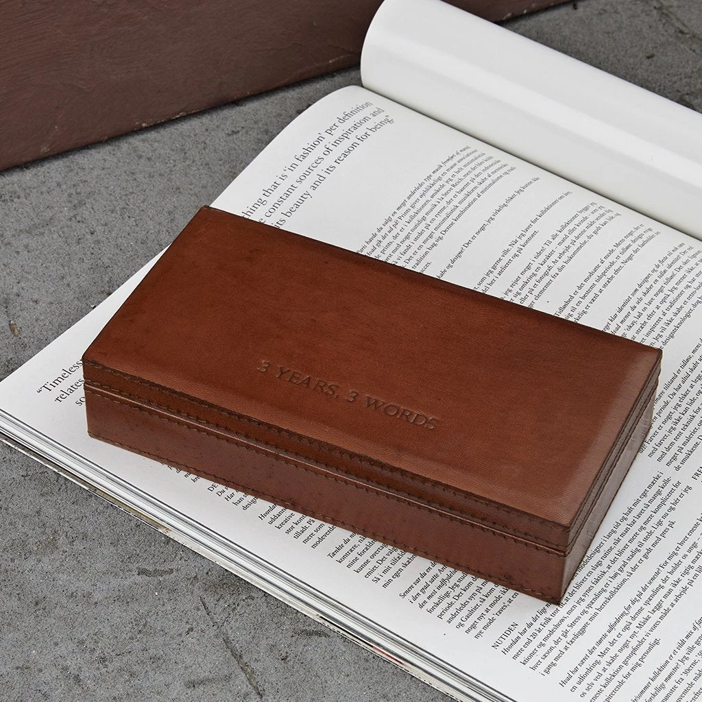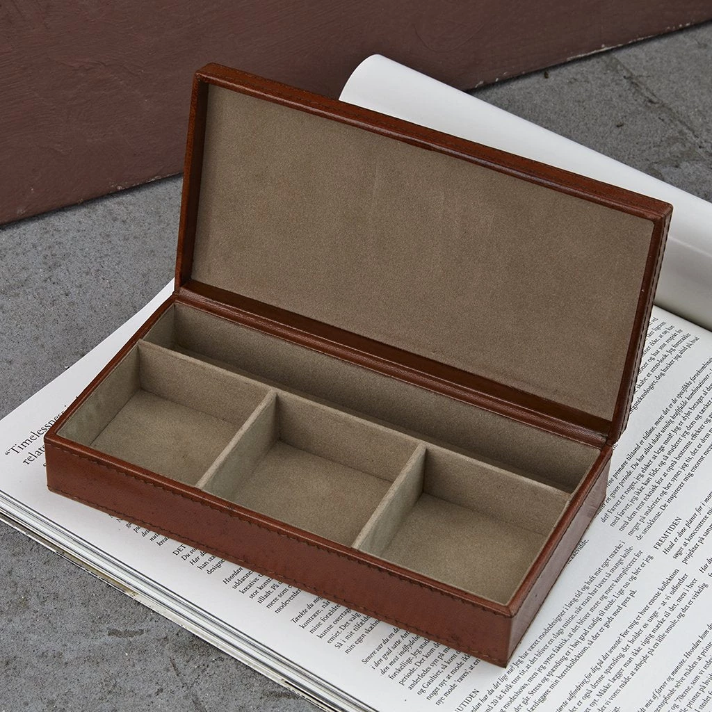 Equally, the leather cufflink box works well on the desk with pencil or pen, stamps, staples and paper clips.Â