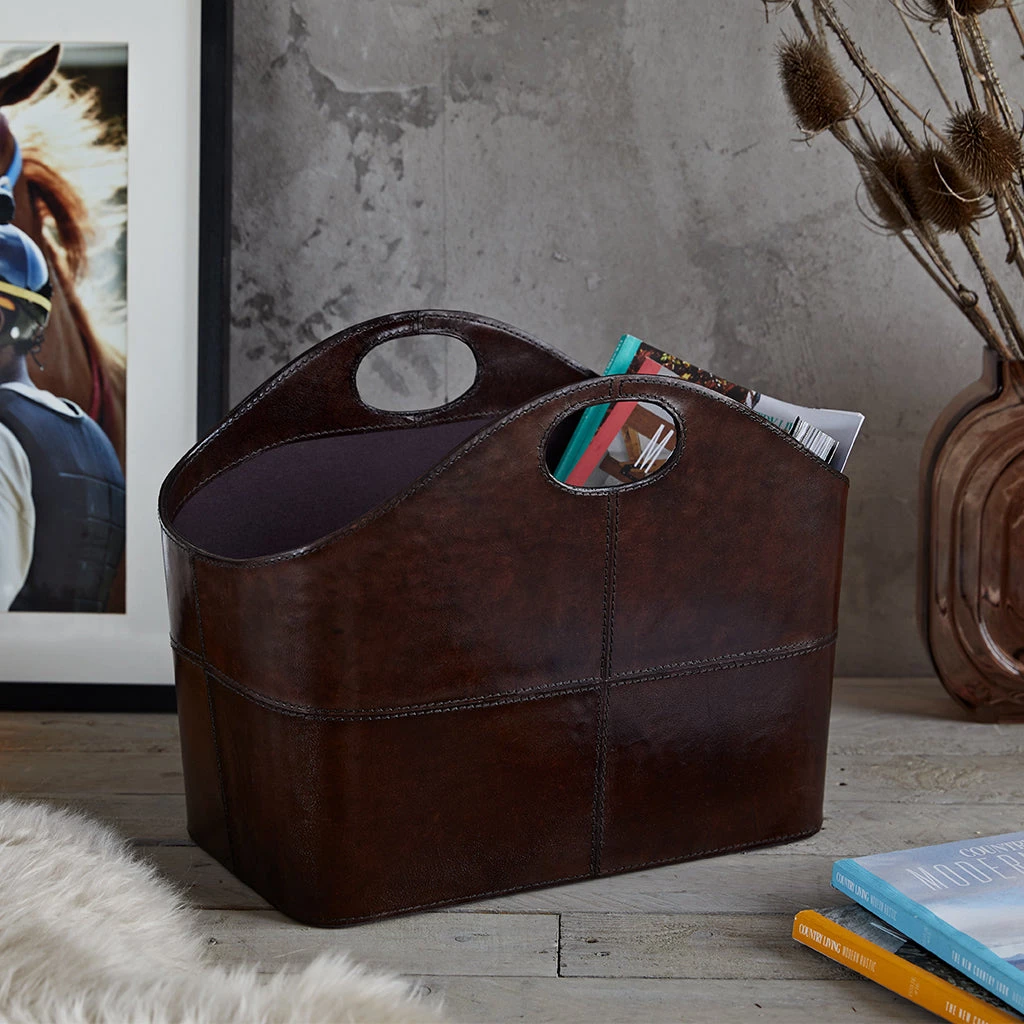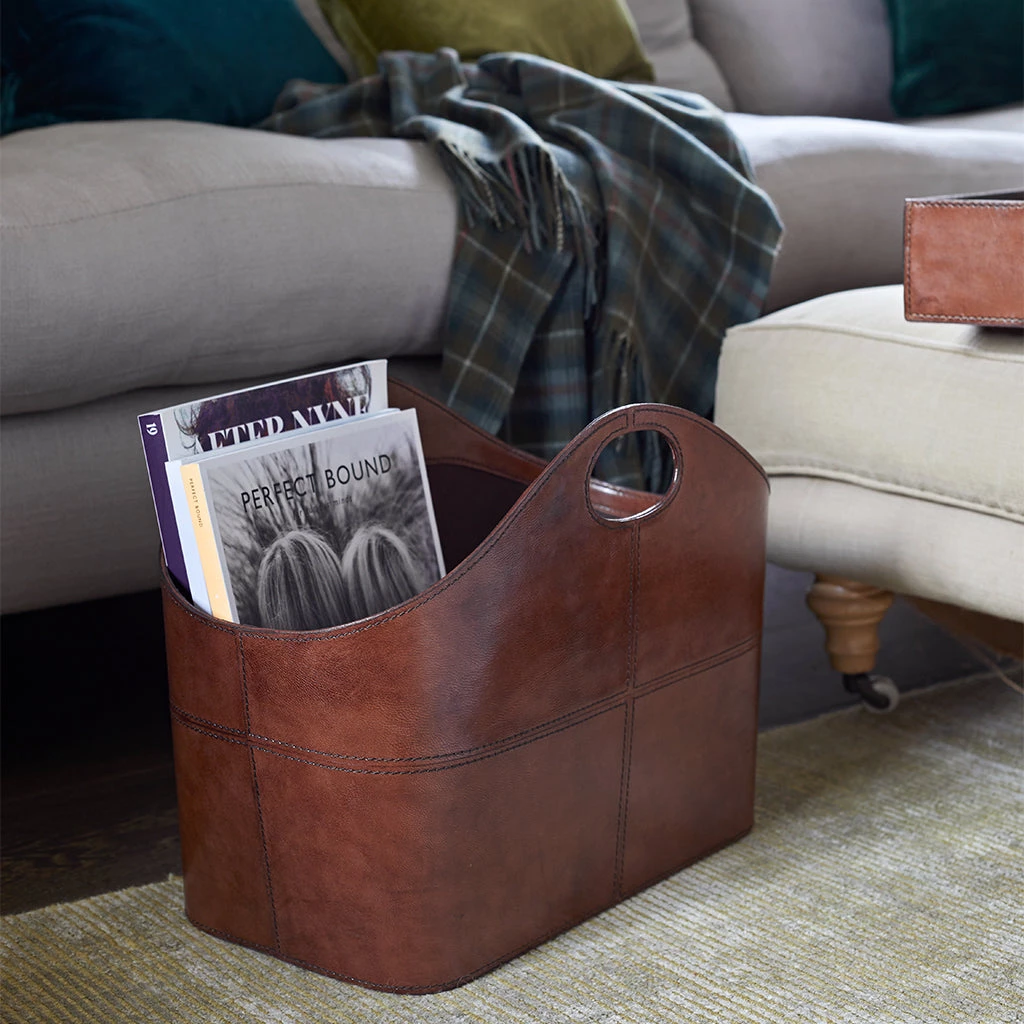 Not just for admiring, this curved leather storage basket is perfect in many rooms of the home, from a smart loo roll holder to storing an essential reading list by your favourite chair.