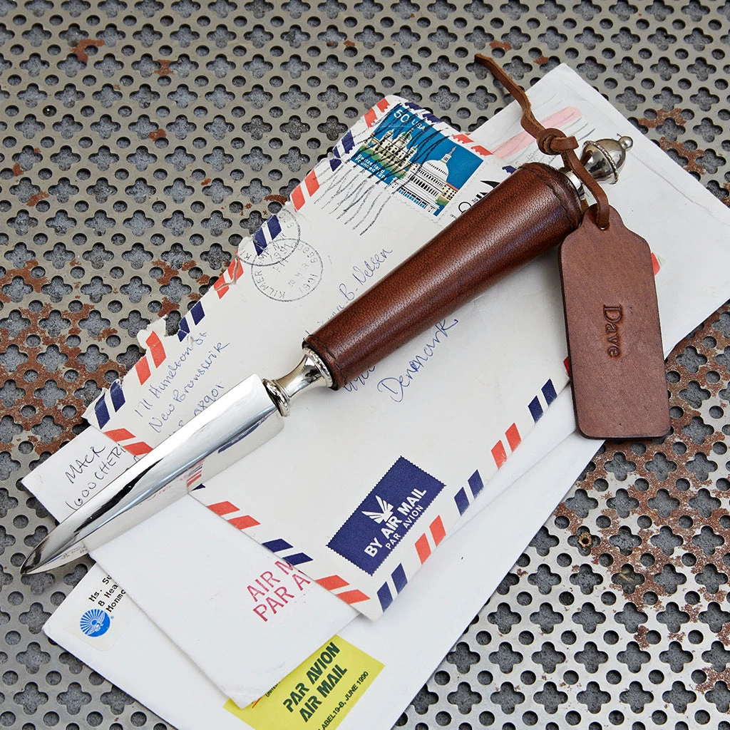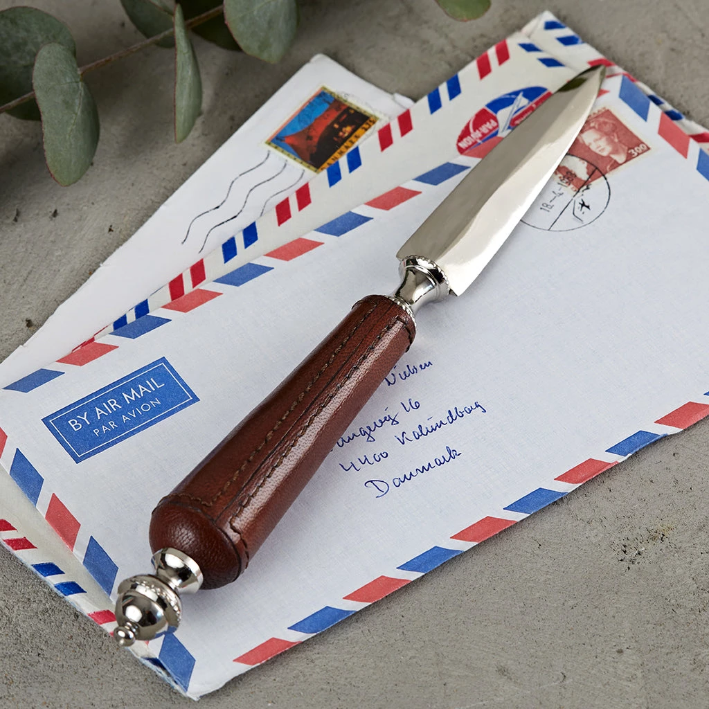 A beautiful leather handled letter opener. Our signature conker leather creates a smooth handle to hold while opening your morning post with style. A gift that will ensure the giver is remembered every day.