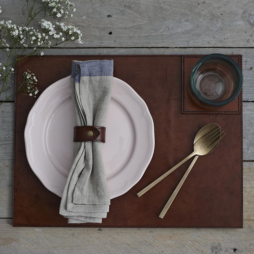 A traditional leather place setting can be achieved with the rectangular place mat with the square place mat perfect for a smaller table.