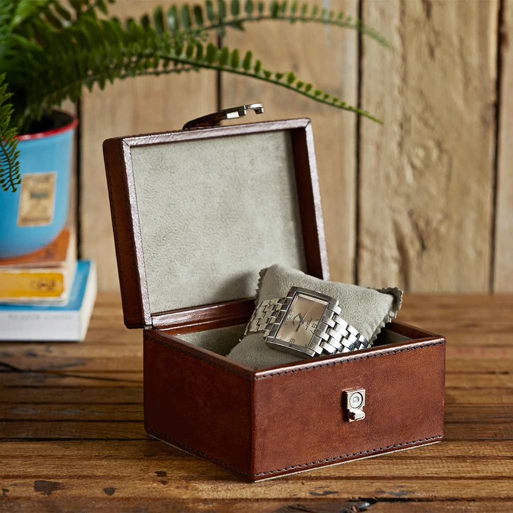 As a leather keepsake box, it is enjoyed by wives, girlfriends and daughters, as a useful and attractive storage box to have on a dressing table that has a size to accommodate necklaces, watches and little trinkets too.