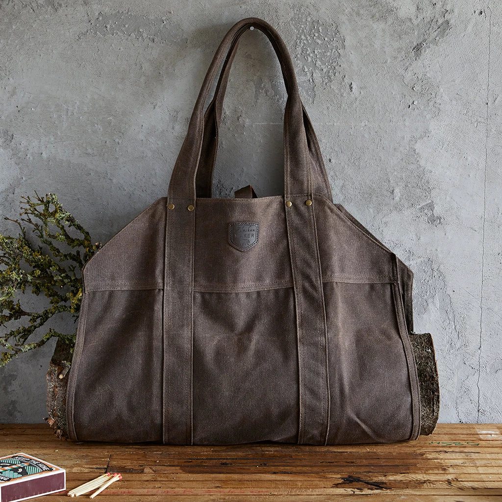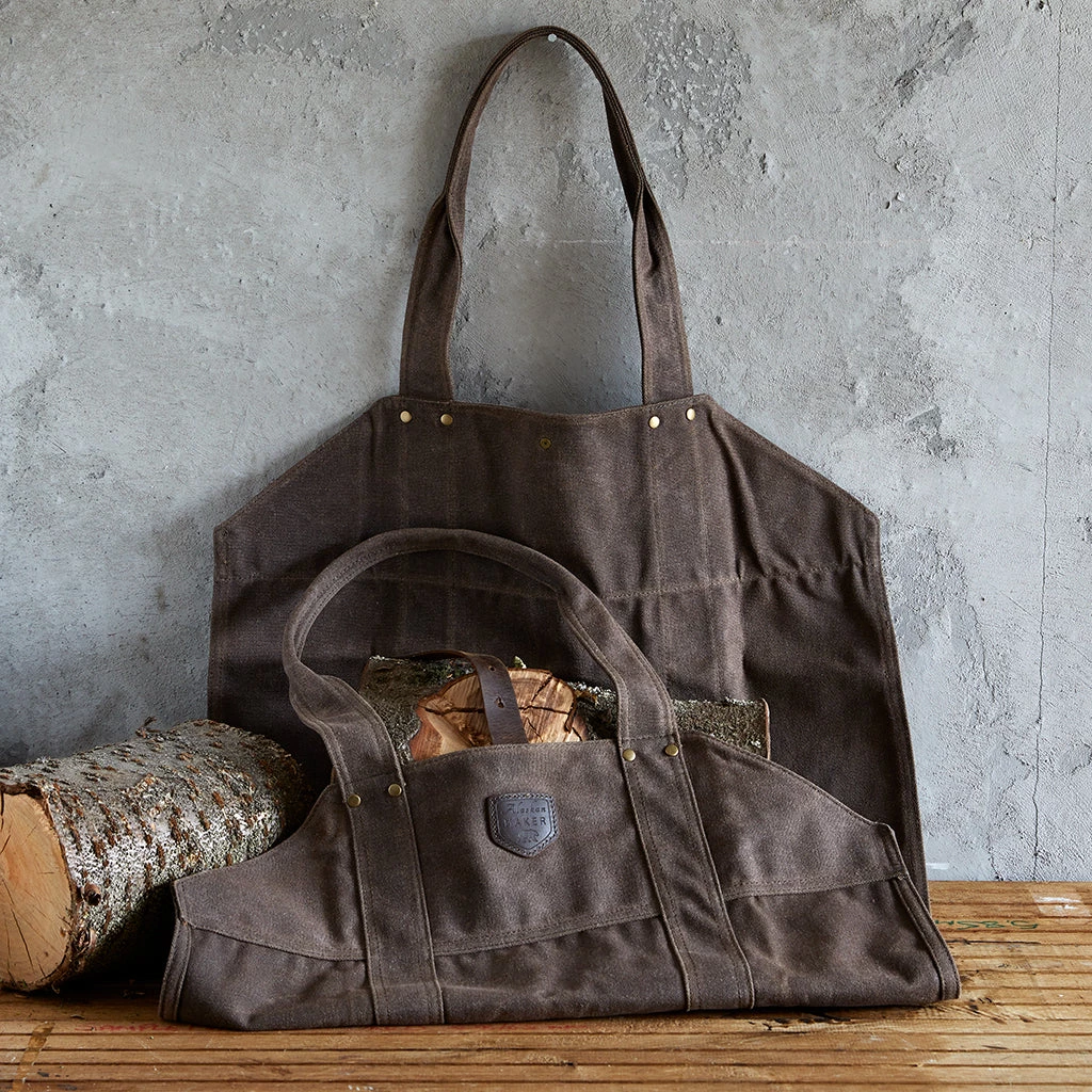 The waxed canvas log carrier allows you to transport and bring your logs or kindling next to your fire. It is practical and robust. Suitable for use when camping.